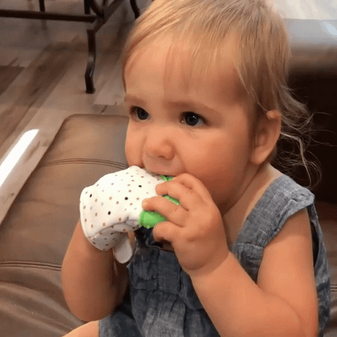 This teething glove is an innovative product that helps relieve your baby's teething pain with its soft and flexible silicone teething surface. It also helps protect your baby's hands from skin damage due to excess saliva.