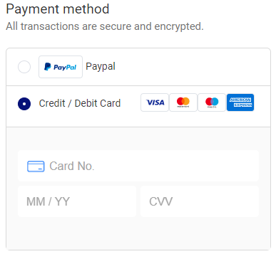 If you want to checkout with a Credit and Debit Card. just enter your * Card No. * Expiration Date. and * CVV.